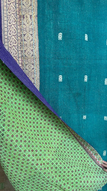 Emerald & Cobalt Kantha Bedspread